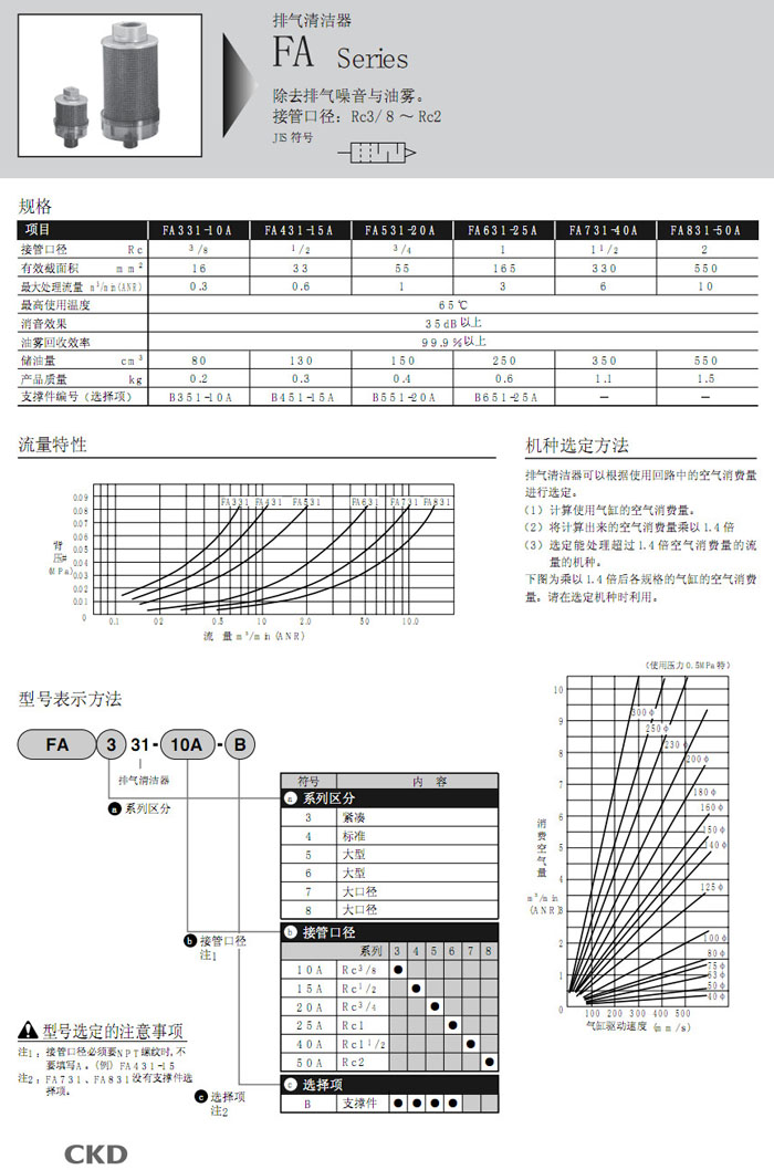 詳細信息 FA331-10A,FA431-15A,FA531-20A,FA631-25A,FA731-40A,FA831-50A,CKD排氣清潔器