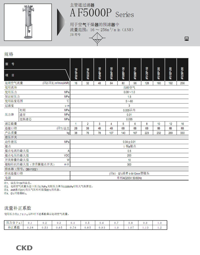AF5016P,AF5032P,AF5048P,AF5064P,AF5080P,AF5096P,AF5128P,AF5160P,AF5192P,AF5256P,CKD主管道過濾器