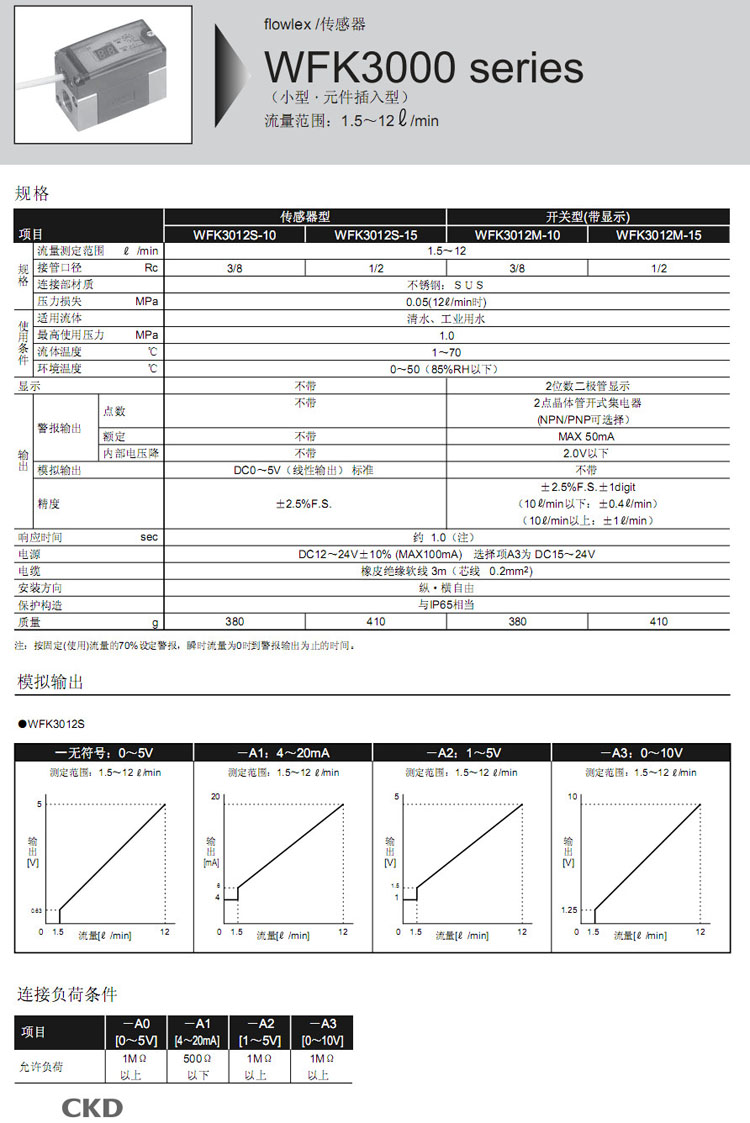 WFK3012S-10,WFK3012S-15,WFK3012M-10,WFK3012M-15,CKD傳感器
