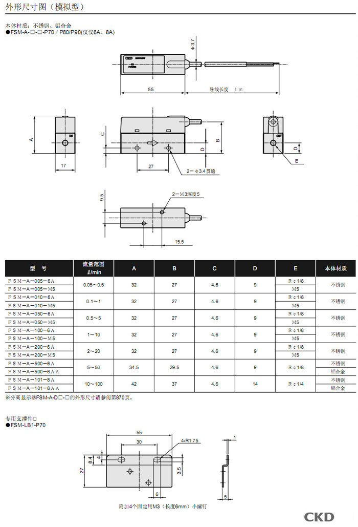 詳細(xì)信息 FSM-N-005,FSM-P-005,FSM-A-005,FSM-N-010,FSM-P-010,FSM-A-010,FSM-N-050,CKD流量傳感器