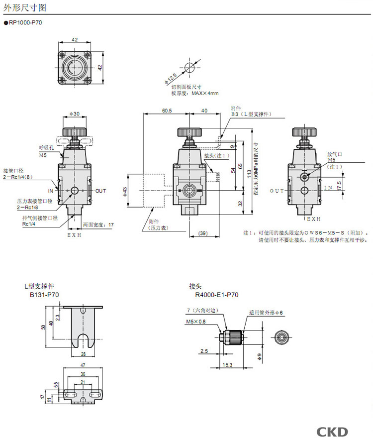 RP1000-8-02-P70,RP1000-8-04-P70,RP1000-8-07-P70,CKD精密減壓閥