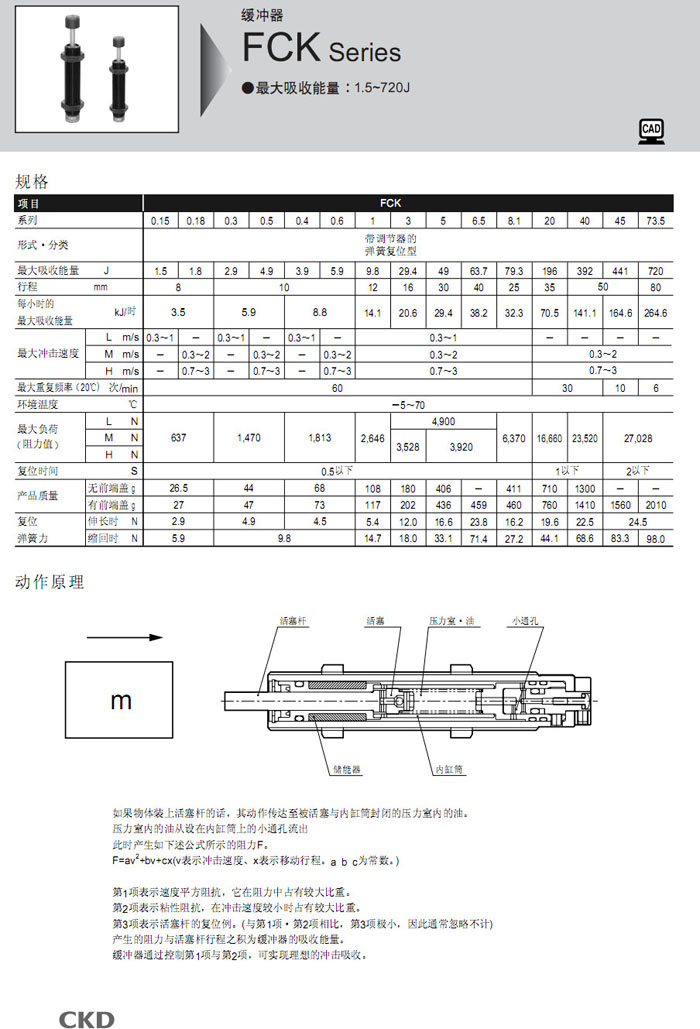 詳細(xì)信息 FCK-L-0.15,FCK-L-0.3,FCK-L-0.4,FCK-L-1,FCK-L-3,FCK-L-5,FCK-L-6.5,FCK-L-8.1,CKD緩沖器
