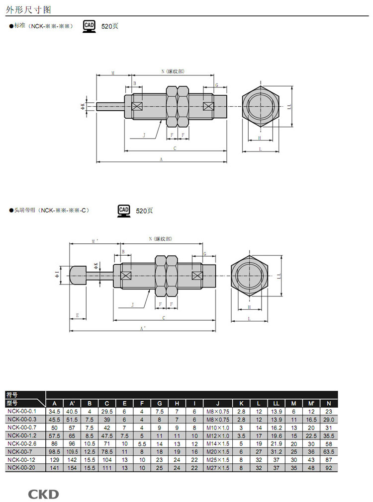 詳細(xì)信息 NCK-FA-0.1,NCK-FA-0.3,NCK-FA-0.7,NCK-FA-1.2,NCK-FA-2.6,NCK-FA-7,NCK-FA-12,NCK-FA-20,CKD緩沖器