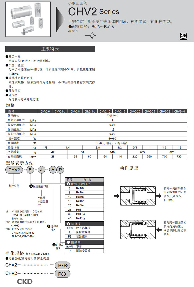 CHV2-6,CHV2-8,CHV2-10,CHV2-15,CHV2-20,CHV2-25,CHV2-32,CHV2-40,CHV2-8-J,CHV2-10-J,CKD止回閥