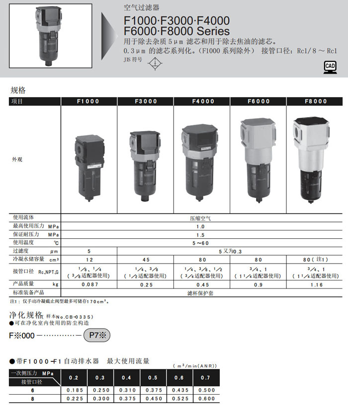 F1000-6,F1000-8,F3000-8,F3000-10,F4000-8,F4000-15,F6000-20,F6000-25,F8000-20,F8000-25,F4000-10,CKD空氣