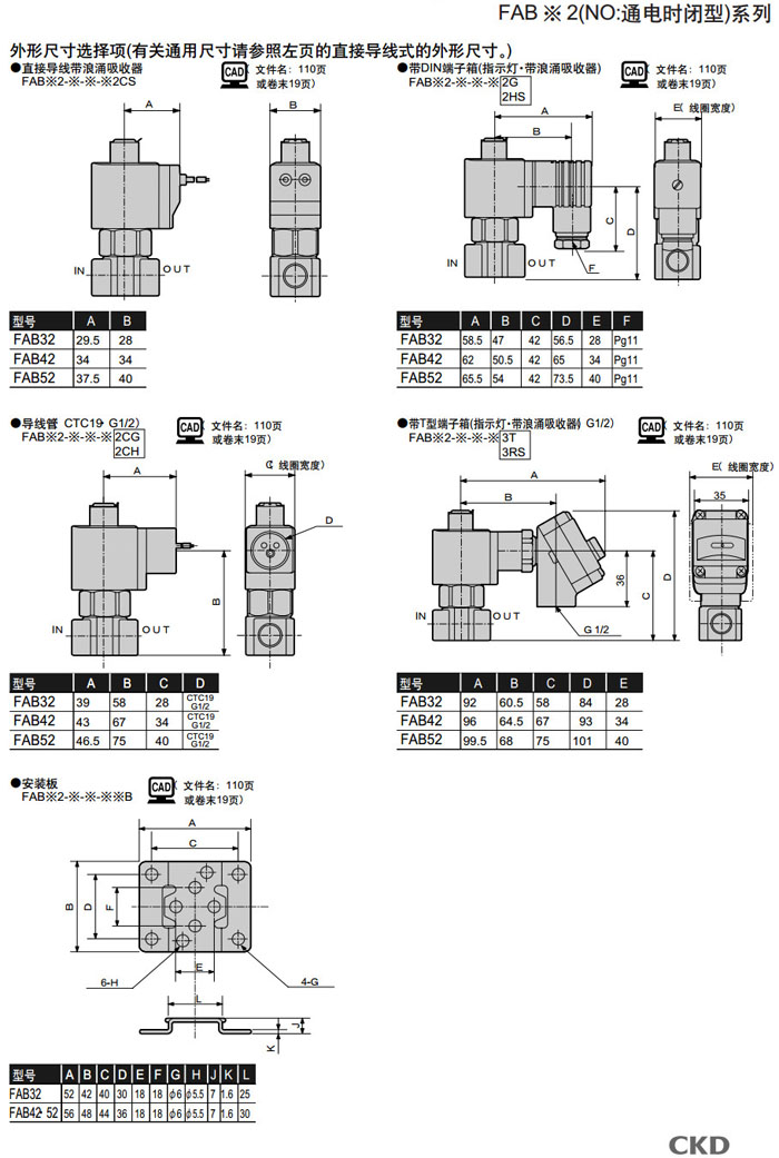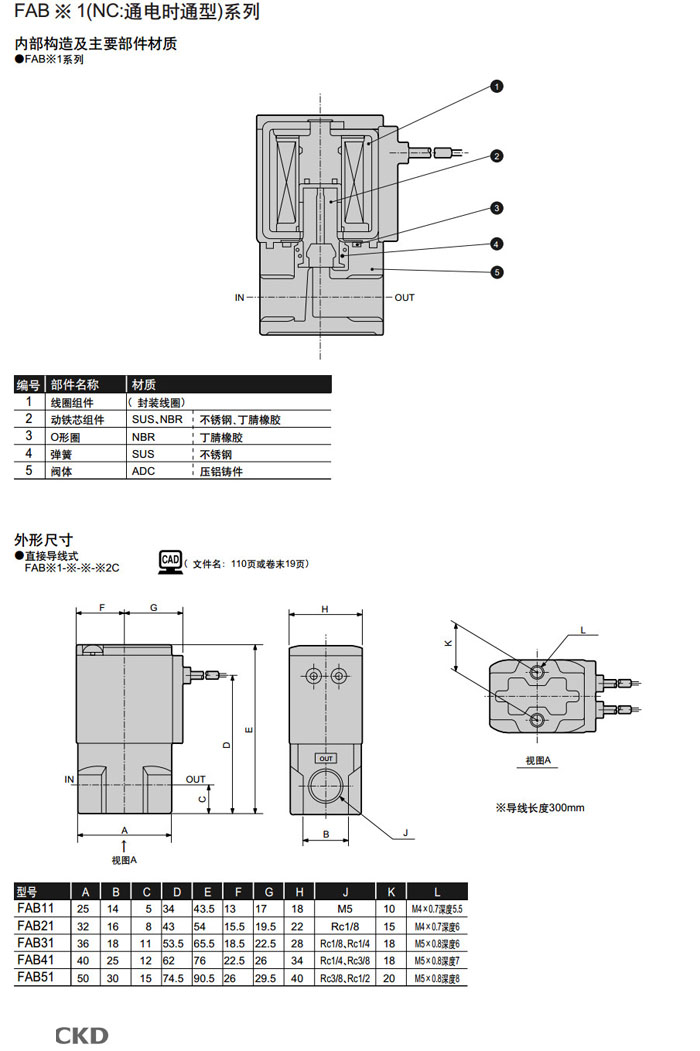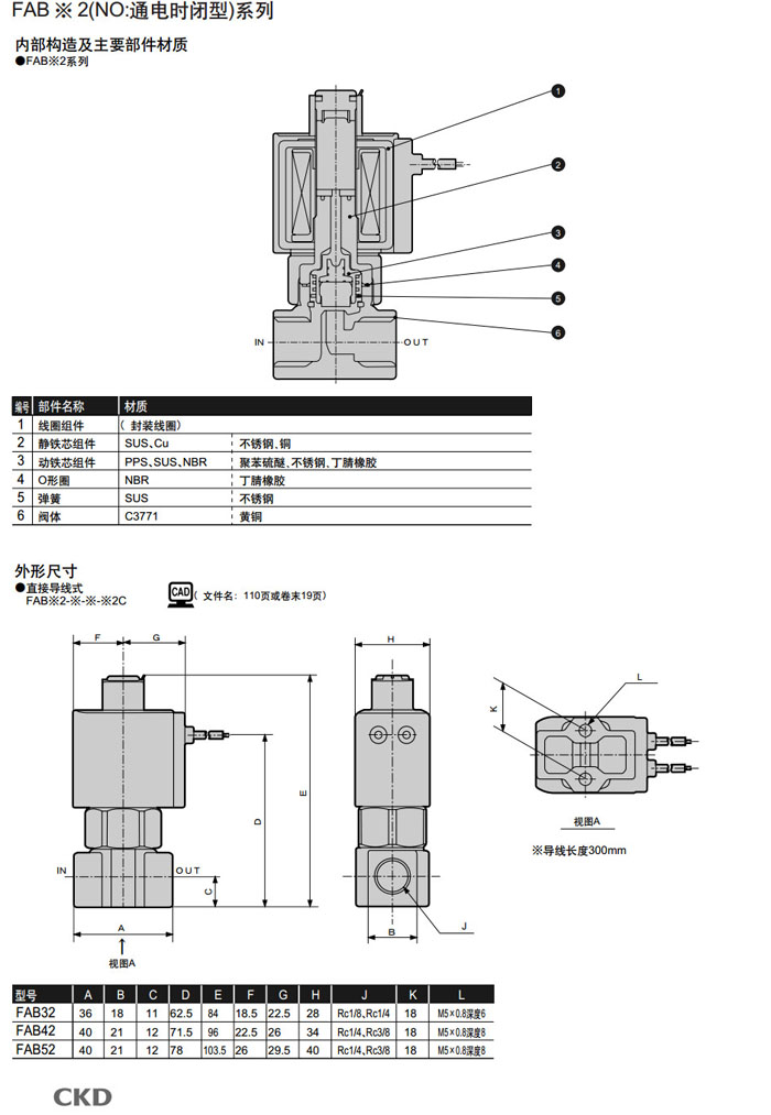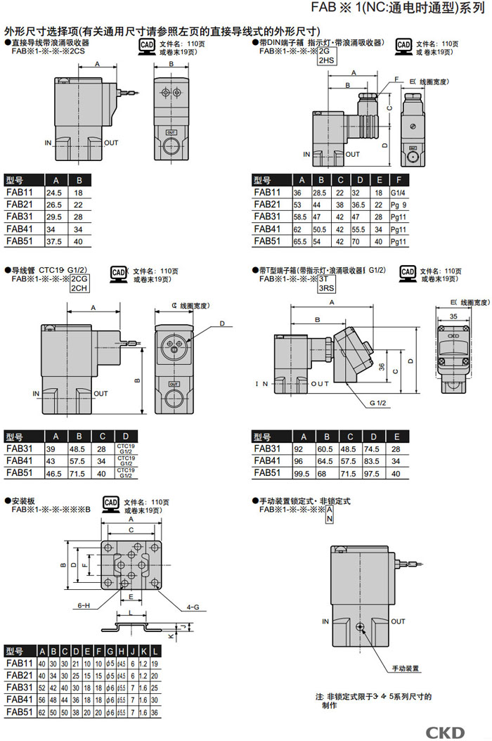 FAB11,FAB21,FAB31,FAB41,FAB51,FAB32,FAB42,FAB52,FAB11-M5-Z-12C,FAB52-10-7-02C,CKD直動式2通電磁閥
