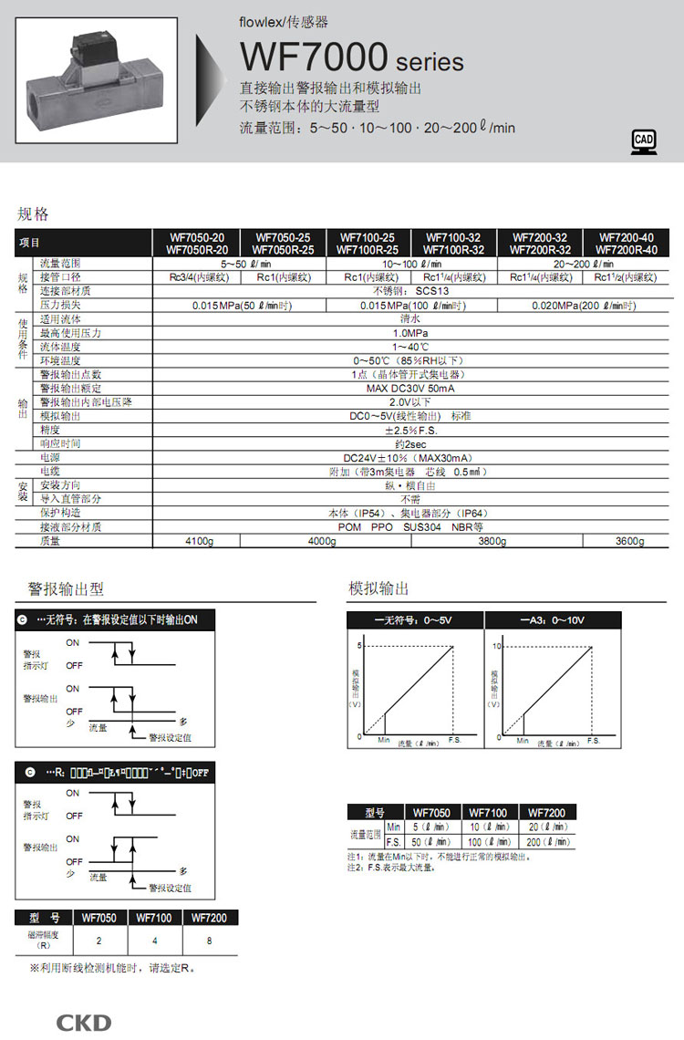 WF7050-20,WF7050-25,WF7100-25,WF7100-32,WF7200-32,WF7200-40,CKD傳感器