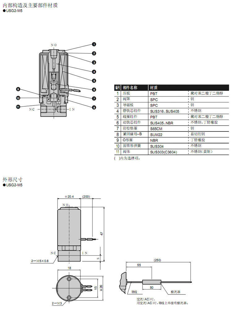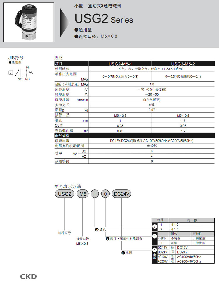 詳細信息 USG2-M5-1,USG2-M5-2,CKD直動式3通電磁閥