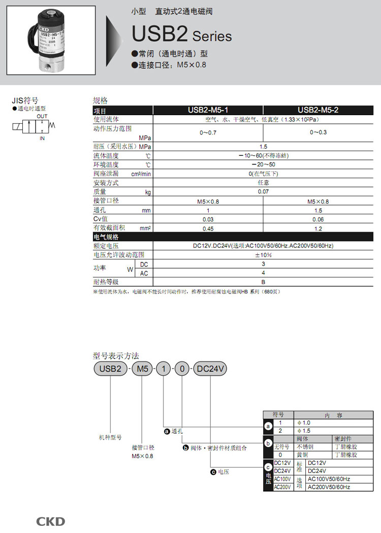 詳細(xì)信息 USB2-M5-1,USB2-M5-2,CKD直動(dòng)式2通電磁閥