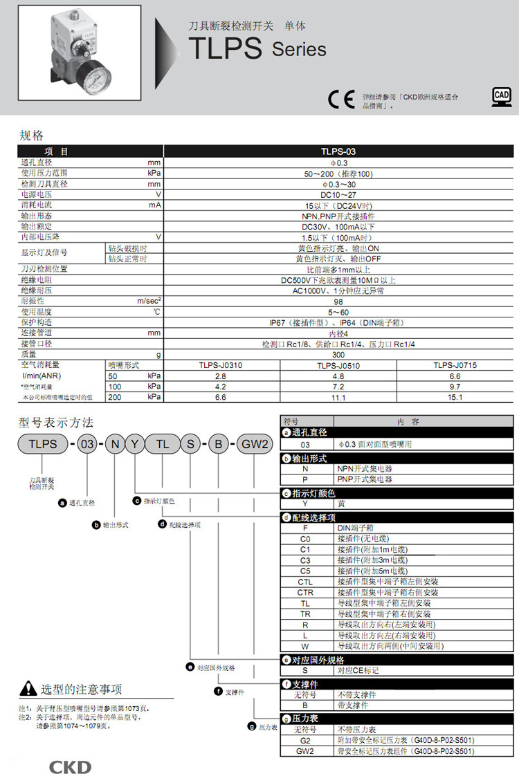 詳細(xì)信息 TLPS-03,CKD檢測(cè)開關(guān)