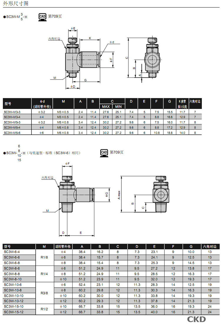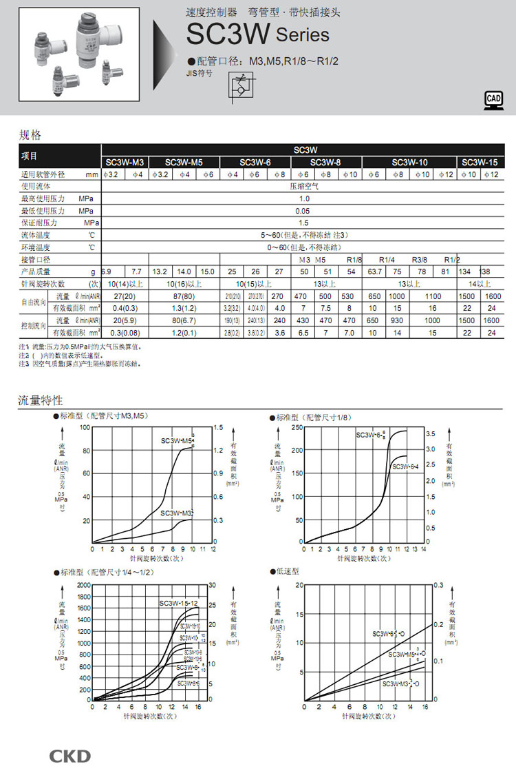 SC3W-M3,SC3W-M5,SC3W-6,SC3W-8,SC3W-10,SC3W-15,CKD速度控制器