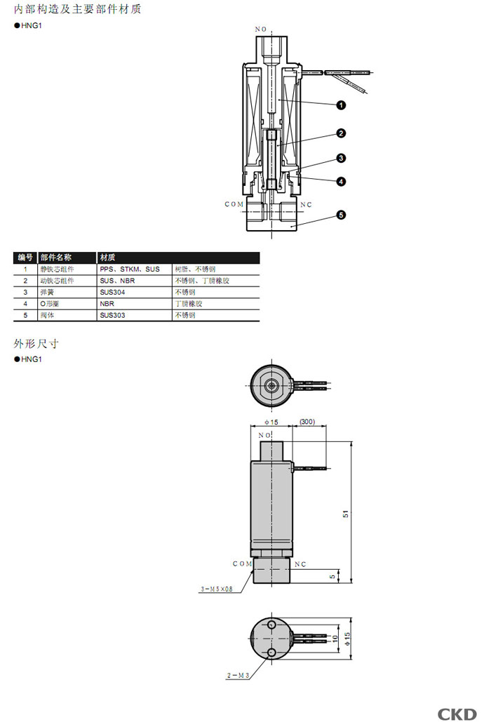 HNG1-M5,CKD直動式3通電磁閥