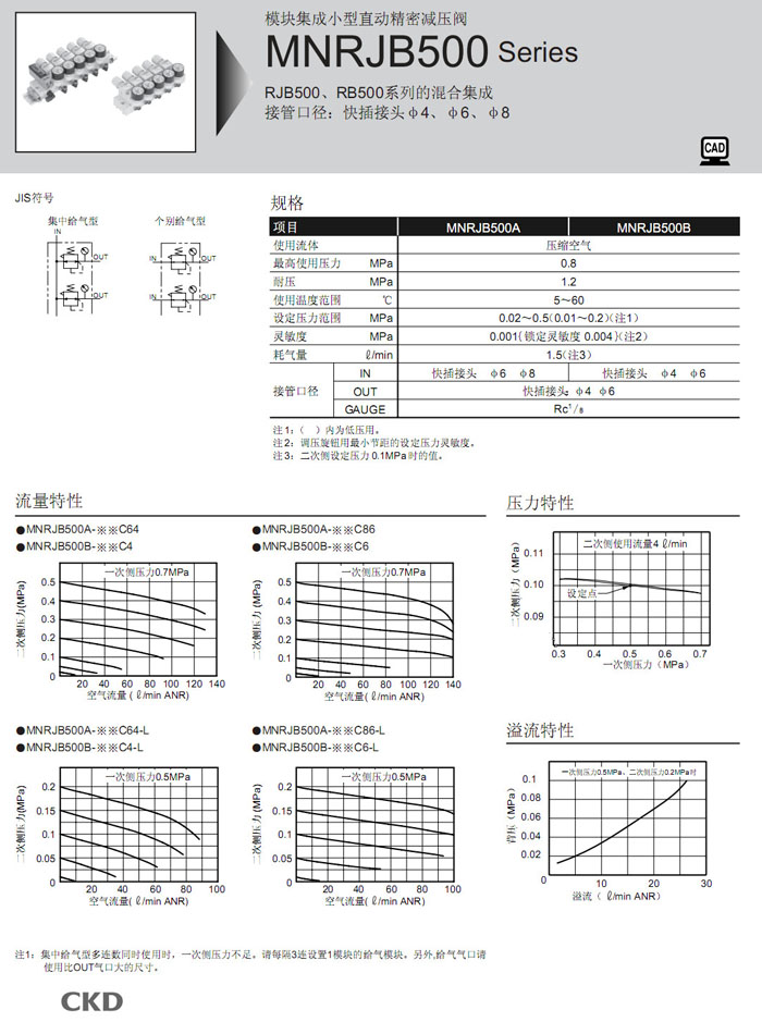 MNRJB500A-SSC64,MNRJB500B-SSC4,MNRJB500A-SSC66,MNRJB500B-LSC4,MNRJB500A-LSC64,CKD模塊集成減壓閥