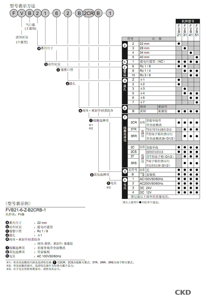 FVB21-6-Z-B2CR,FVB31-6-3-B2CR,FVB41-8-5-B2CR,FVB51-8-5-B2CR,FVB51-8-6-B2CR,CKD直動式2通電磁閥