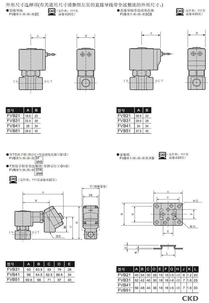 詳細信息 FVB21-6-Z-B2CR,FVB31-6-3-B2CR,FVB41-8-5-B2CR,FVB51-8-5-B2CR,FVB51-8-6-B2CR,CKD直動式2通電磁閥