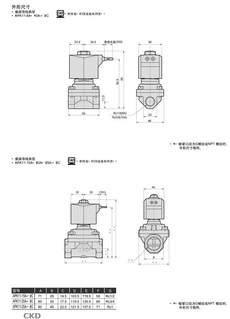 APK11-10A,APK11-10A,APK11-15A,APK11-20A,APK11-25A,CKD先導式2通電磁閥