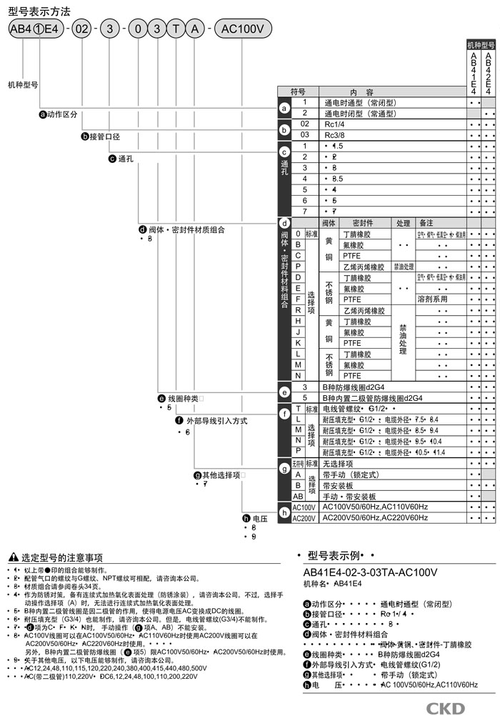 AB41E4-02-1,AB41E4-03-1,AB41E4-02-2,AB41E4-03-2,AB41E4-02-3,AB41E4-03-3,CKD直動式2通電磁閥