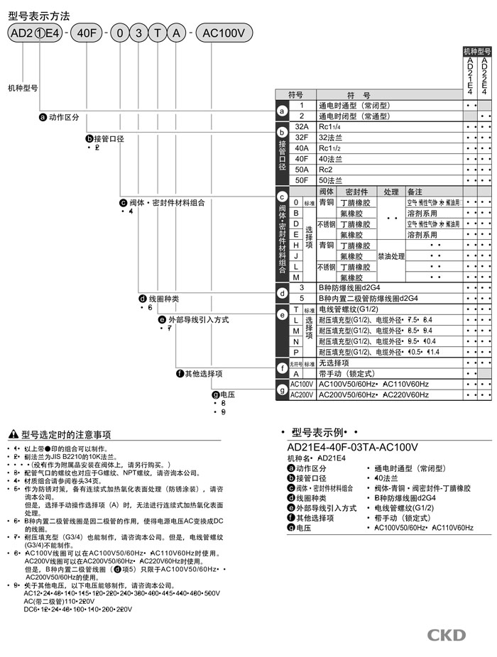 AD22E4-32A,AD22E4-32F,AD22E4-40A,AD22E4-40F,AD22E4-50A,AD22E4-50F,CKD先導(dǎo)式2通電磁閥
