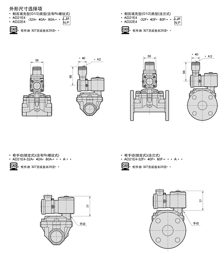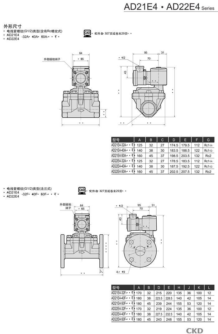 AD21E4-32A,AD21E4-32F,AD21E4-40A,AD21E4-40F,AD21E4-50A,AD21E4-50F,CKD先導(dǎo)式2通電磁閥