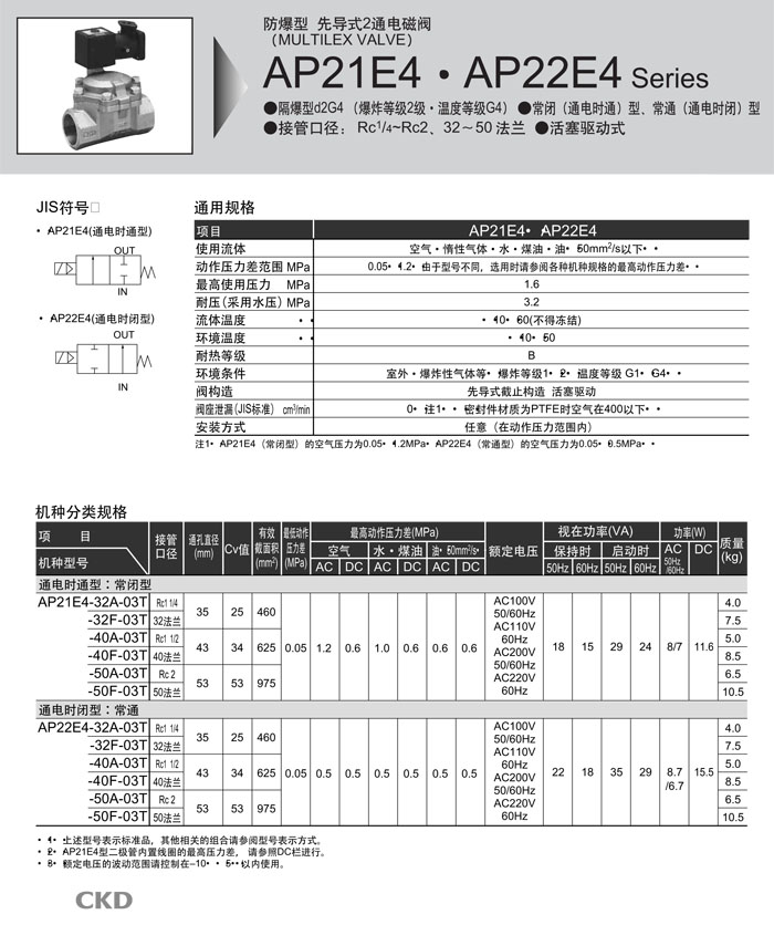 AP22E4-40A-K3P,AP22E4-40A-K5T,AP22E4-40A-K5L,AP22E4-40A-K5M,AP22E4-40A-K5N,AP22E4-40A-K5P,CKD先導(dǎo)式2通電磁閥