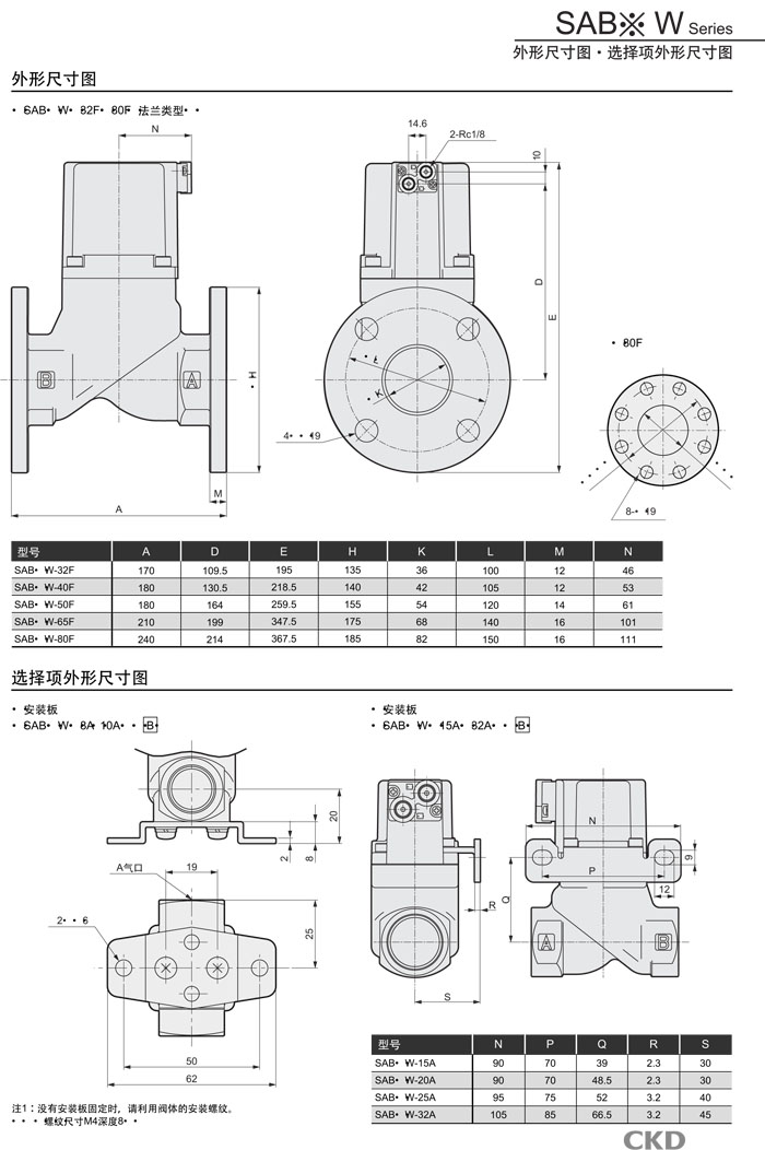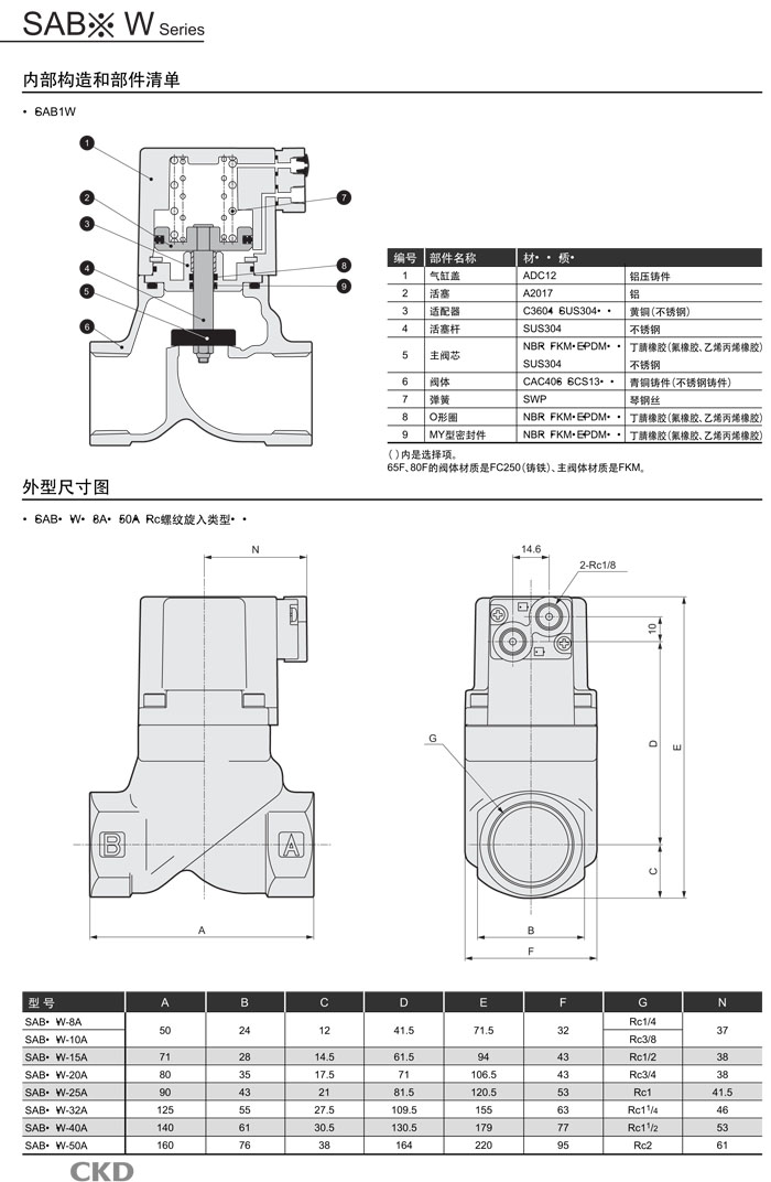 SAB3W-15,SAB3W-20,SAB3W-25,SAB3W-32,SAB3W-40,SAB3W-50,CKD氣控式2通閥