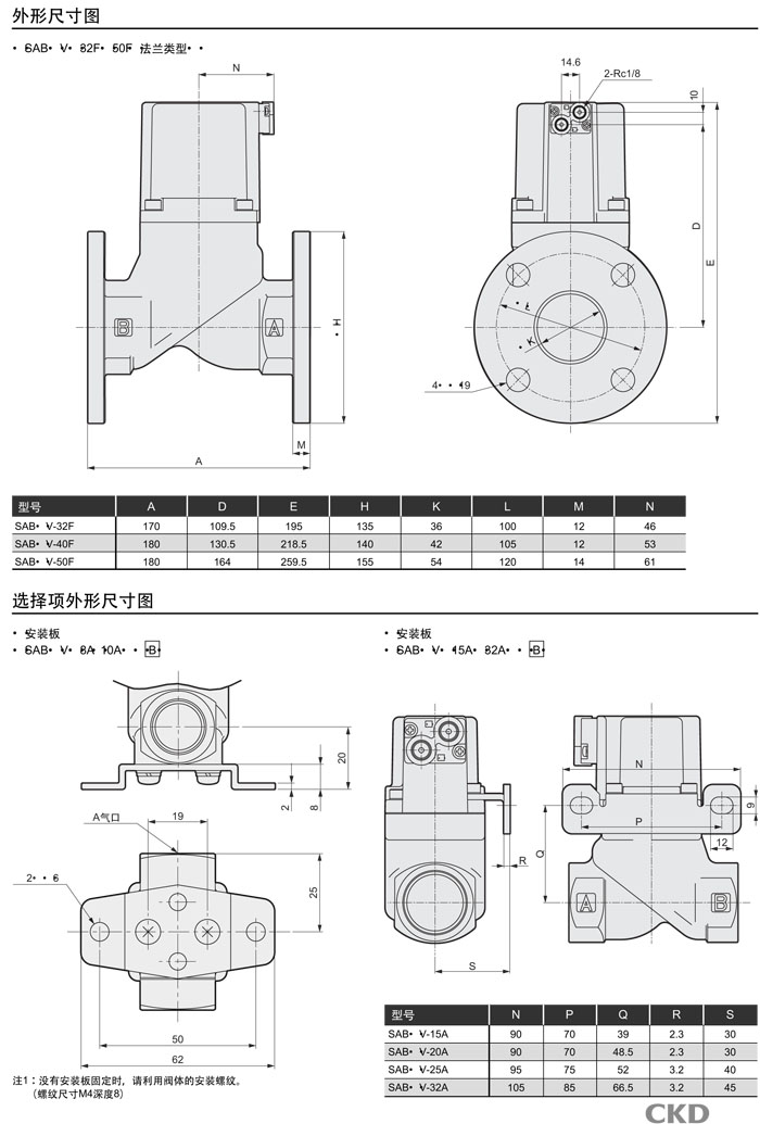 SAB1V-8A,SAB1V-10A,SAB1V-15A,SAB1V-20A,SAB1V-25A,SAB1V-32A,SAB1V-32F,SAB1V-40A,CKD氣控式2通閥