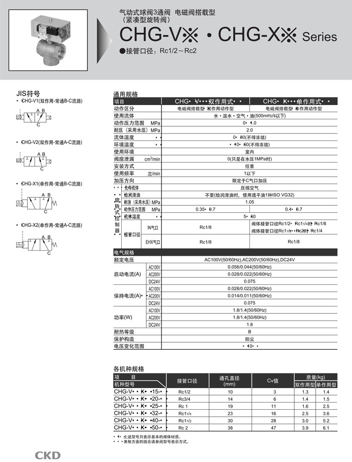 CHG-V1-15,CHG-V2-15,CHG-X1-15,CHG-X2-15,CHG-V1-20,CHG-V2-20,CHG-X1-20,CKD氣動(dòng)式球閥3通閥