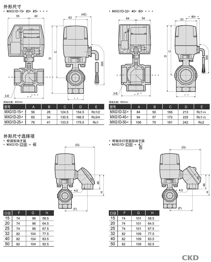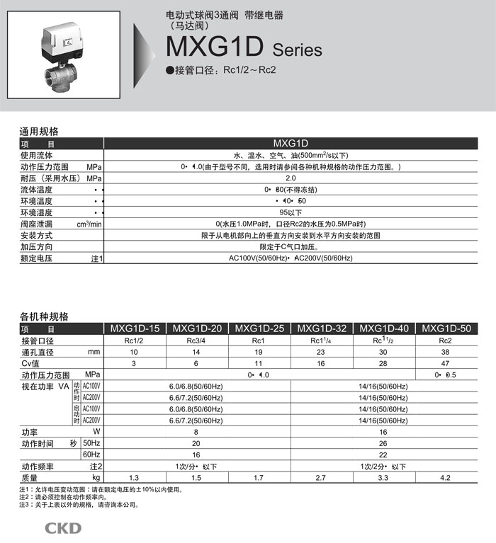 MXG1D-15,MXG1D-20,MXG1D-25,MXG1D-32,MXG1D-40,MXG1D-50,CKD電動式球閥3通閥