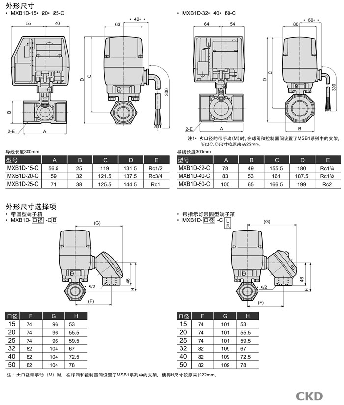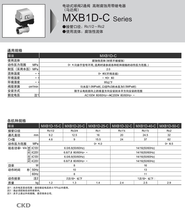MXB1D-15-C,MXB1D-20-C,MXB1D-25-C,MXB1D-32-C,MXB1D-40-C,MXB1D-50-C,CKD電動(dòng)式球閥2通閥