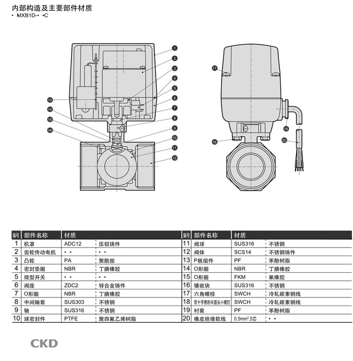 詳細(xì)信息 MXB1D-15-C,MXB1D-20-C,MXB1D-25-C,MXB1D-32-C,MXB1D-40-C,MXB1D-50-C,CKD電動(dòng)式球閥2通閥