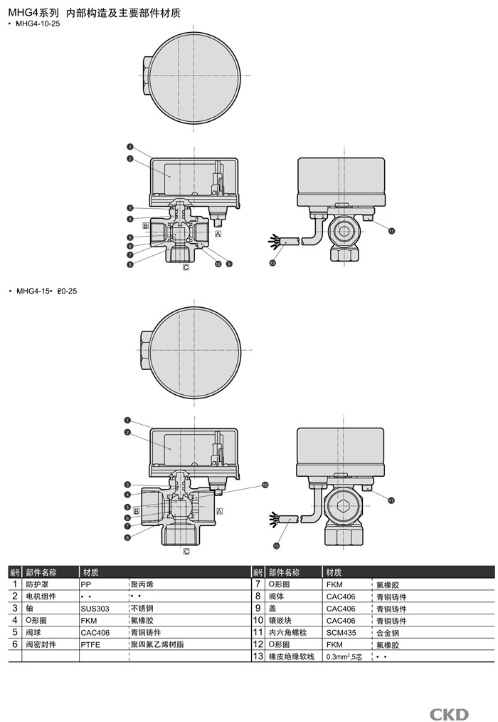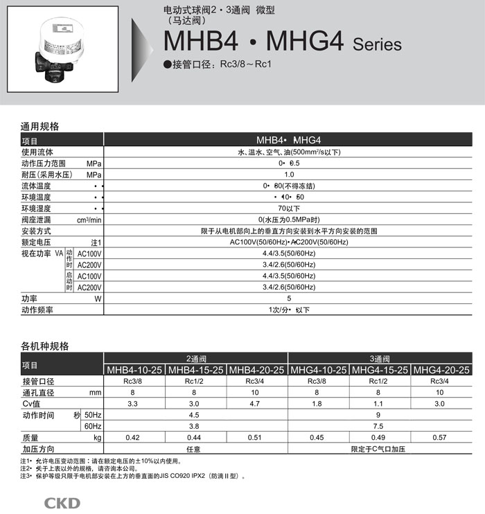 MHB4-10-25,MHB4-15-25,MHB4-20-25,MHG4-10-25,MHG4-15-25,MHG4-20-25,CKD電動式球閥2·3通電磁閥