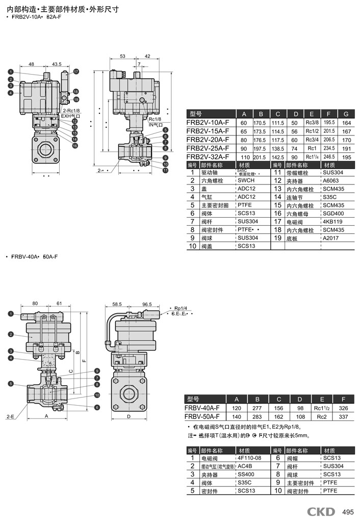 FRB2-10A-F,FRB2-15A-F,FRB2-20A-F,FRB2-25A-F,FRB2-32A-F,FRB-40A-F,FRB-50A-F,CKD氣動式球閥2通閥