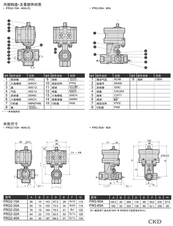 FRG2-15A,FRG2-20A,FRG2-25A,FRG2-32A,FRG2-40A,FRG-50A,FRG-65A,CKD氣動(dòng)式球閥3通閥