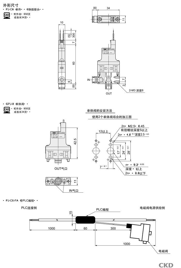 PJ-C6-FA,PJ-C6,GPJ-0,CKD直動式2通電磁閥