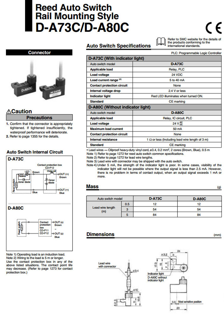 詳細(xì)信息 D-A73C,D-A80C,SMC自動(dòng)開關(guān)