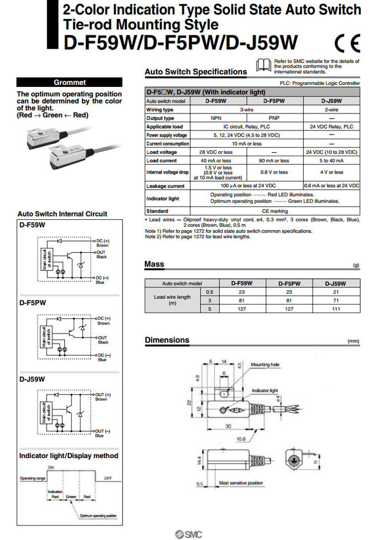 詳細信息 D-F59W,D-F5PW,D-J59W,SMC固態(tài)自動開關(guān)