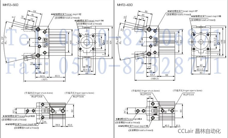 MHT2-32D,MHT2-40D,MHT2-50D,MHT2-63D,杠桿式氣動手指