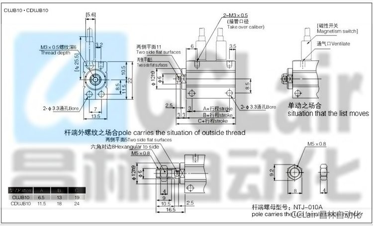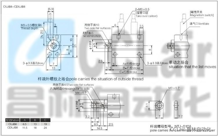 CUJB6-15,CUJB8-4,CUJB8-6,CUJB8-8,CUJB8-10,CUJB8-15,CUJB8-20,CUJB10-4,自由安裝型氣缸