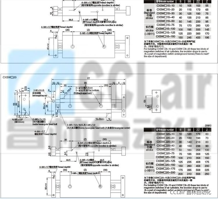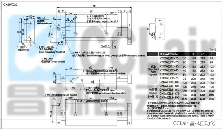 CXSWM6-10,CXSWM6-20,CXSWM6-30,CXSWM6-40,CXSWM6-50,CXSWM10-10,CXSWM10-20,通桿型氣缸