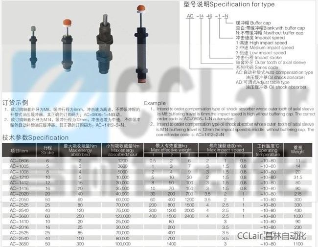 AC2525,AC2540,AC3650,AC4225,AC4250,AC4275,AC6450,AC64100,AC64150,油壓緩沖器