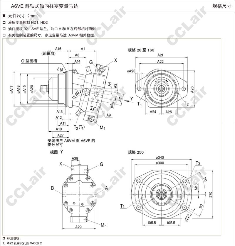A6VE28,A6VE55,A6VE80,A6VE107,A6VE160,A6VE250,A6VE28EP2/63W-VAL027,huade斜軸式軸向柱塞變量馬達