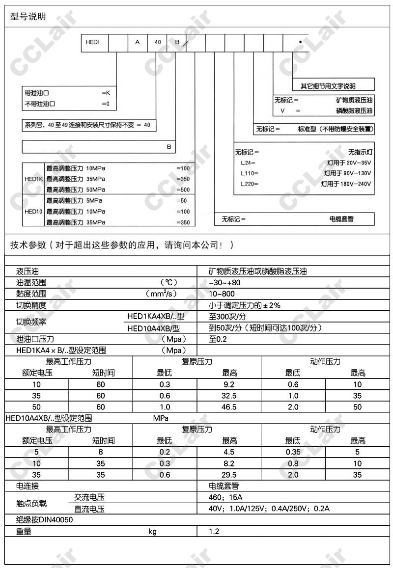 HED1K40,HED0K40,huade柱塞式壓力繼電器
