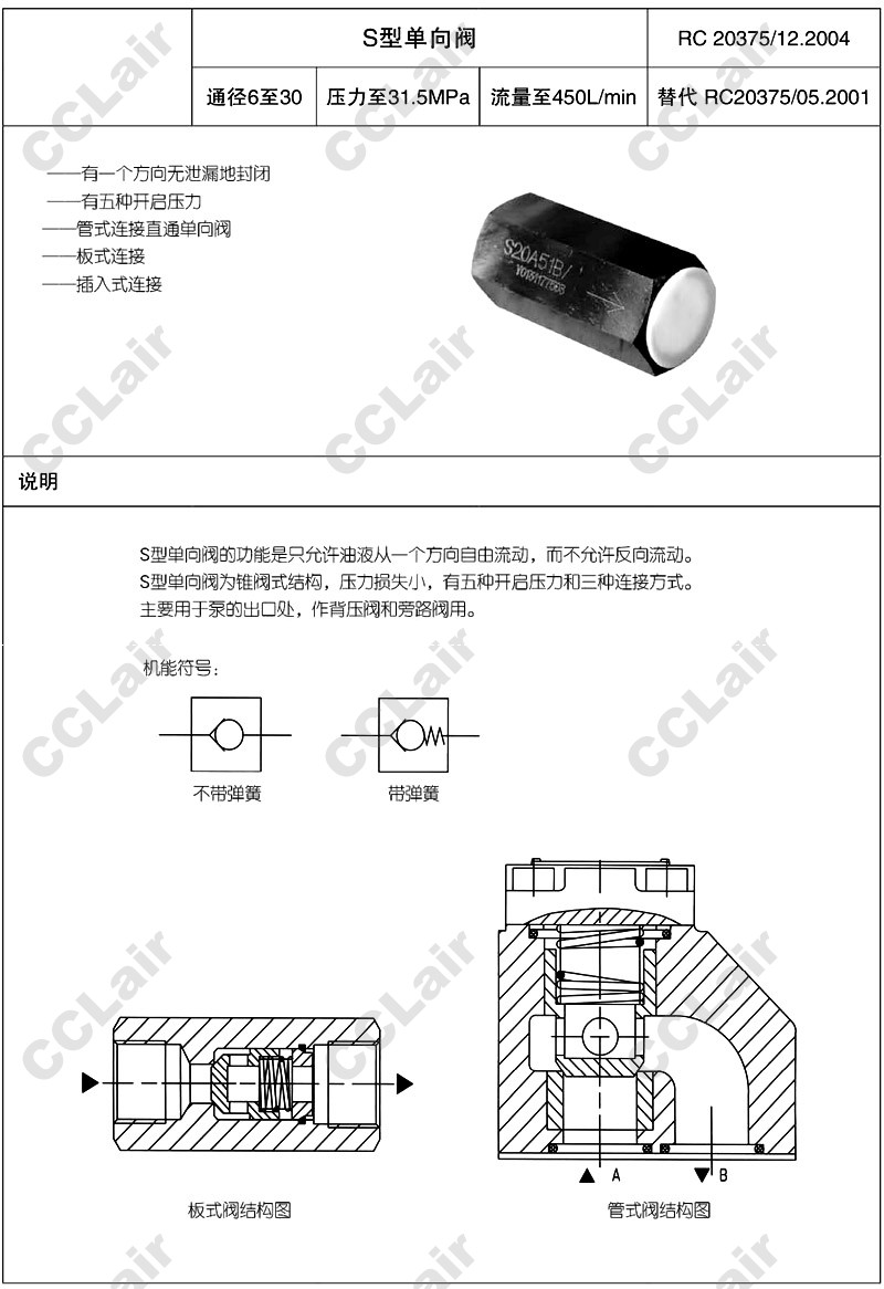 S6,S8,S10,S15,S20,S25,S30,S25K5,S30A1,S6A0,S25A5,S20P0,S6A2,huade單向閥