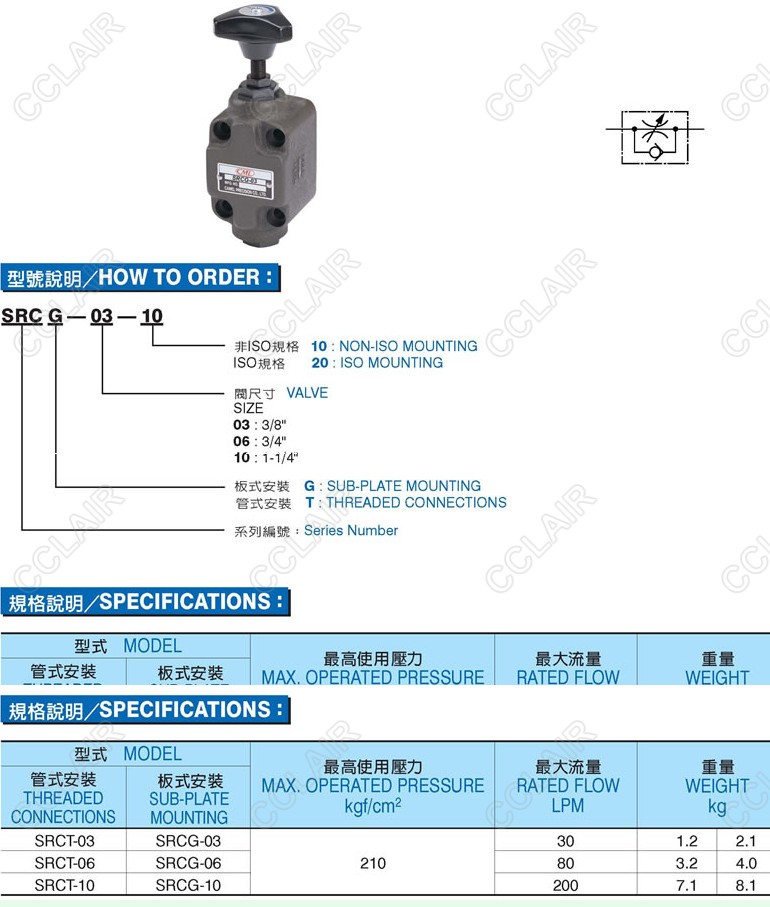 詳細信息 SRCG-03-10,SRCG-03-20,SRCT-06-20,SRCT-10-10,SRCT-10-20,單向節(jié)流閥CML