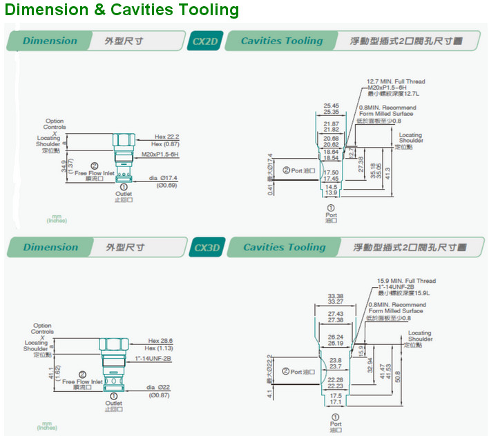 CX2D-T13A-XAN,CX3D-T5A-XBN,CX6D-T16A-XCN,CX8D-T18A-XDN,CX2D-T13A-XEN,HYDROMAX插式單向閥