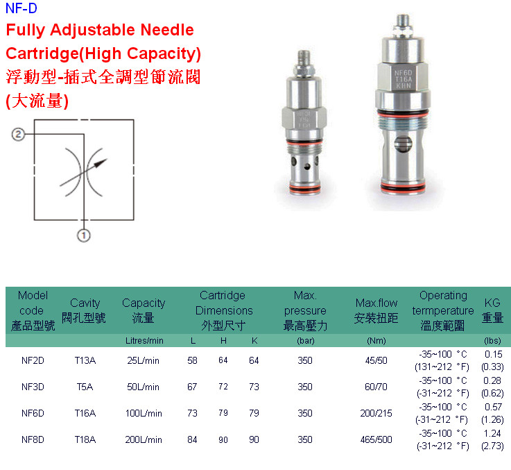 詳細(xì)信息 NF2D-T13A-LFN,NF3C-T5A-LGN,NF6C-T16A-LEN,NF8C-T18A-LGN,HYDROMAX插式全調(diào)型節(jié)流閥