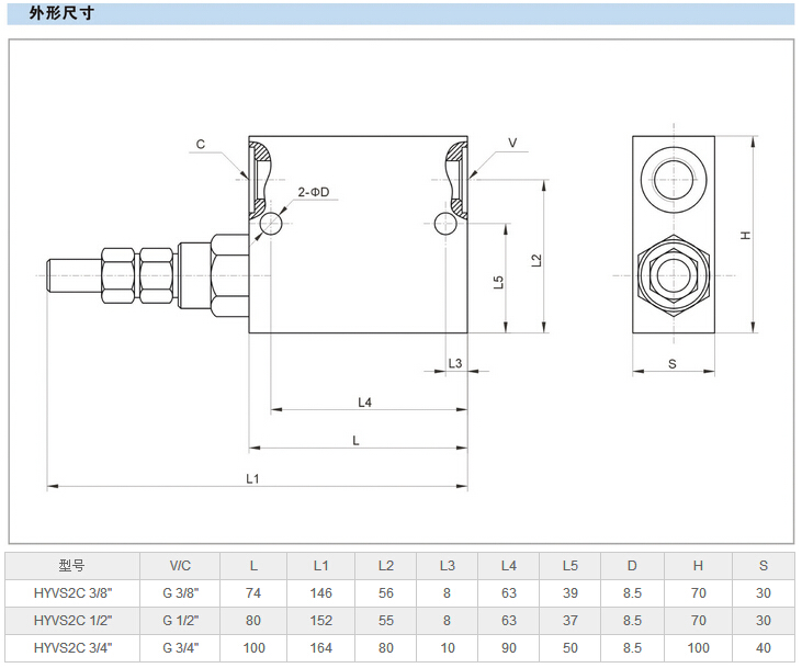 HYVS2C 3/8",HYVS2C 1/2",HYVS2C 3/4",抗氣沖雙向交叉溢流閥