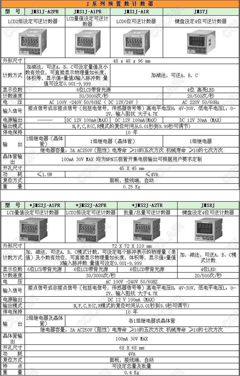 詳細(xì)信息 JMS1J-A2PR,JMS1J-A1PR,JMS1J-A1R,JMS7J,JMS2J-A1PR,JMS2J-A2PR,JMS2J-A2TR,JMS8J,JMS5J,預(yù)置數(shù)計數(shù)器