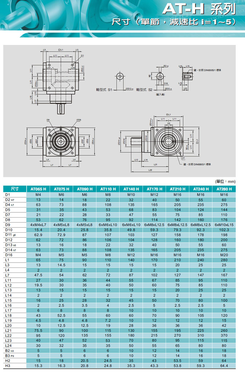AT065-H,AT075-H,AT090-H,AT110-H,AT140-H,AT170-H,AT210-H,伺服專用減速機
