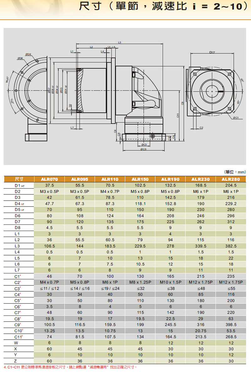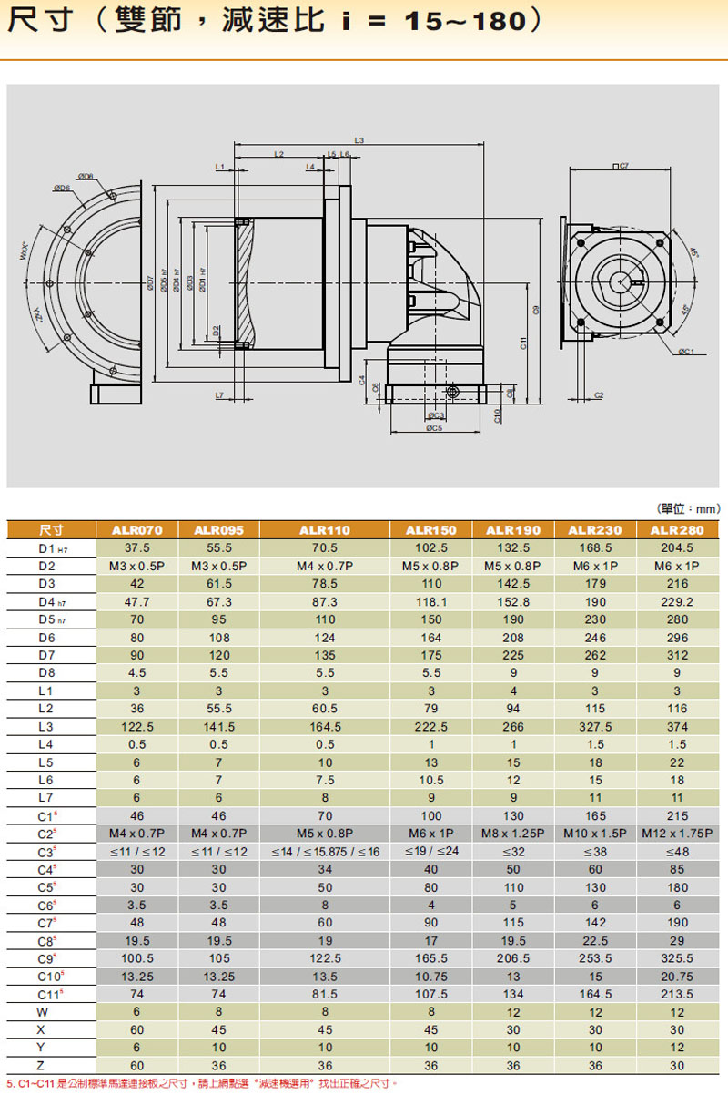 ALR070,ALR095,ALR110,ALR150,ALR190,ALR230,ALR280,伺服專用減速機